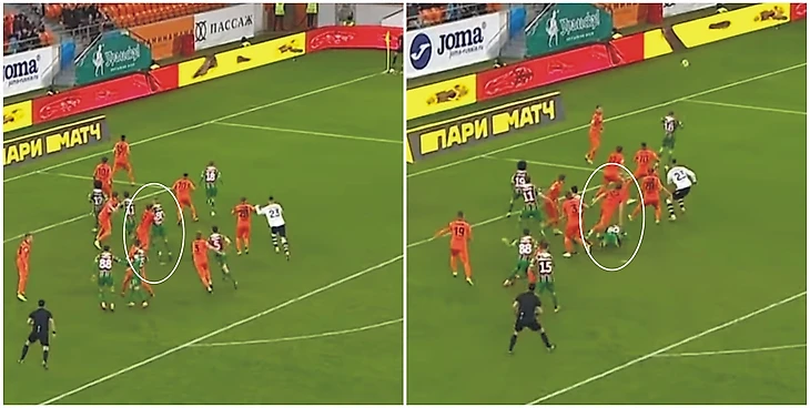 Румыну осталось только подставить голову, а Коновалов ударом откуда-то из карате мог только привезти красную и пенальти.