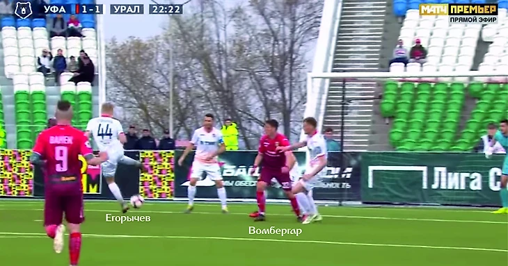 Ответный гол приходит после приёма Егорычева, больше похожего на балетное па. Неловкое касание мяча, и тот оказывается у Вомбергара, который свободно расстреливает ворота.