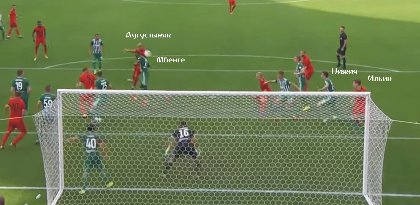 Гол стал следствием не регулярных позиционных ошибок грозненцев, как того следовало бы ждать, но их лени. Видим, как Мбенге проигрывает борьбу Аугустыняку, а Нижич запускает за спину Ильина. Это всё из той самой серии, которая называется "Лень сделать лишнее усилие". 1:0 в очень неприятный момент - в самом конце первого тайма. И это только начало.