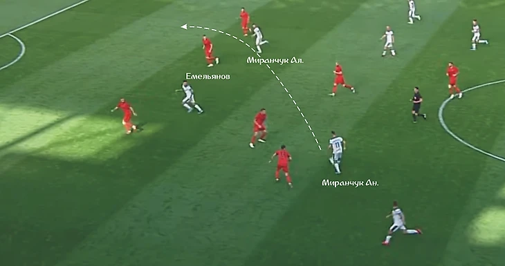 Кажется, будто Миранчук дал пас и своё дело тем самым сделал, но нет. Он умеет играть в футбол, что стало неожиданностью для екатеринбуржцев. Отдав передачу, Миранчук бросился вперёд, опередил удивлённых защитников "Урала" и отдал голевую передачу на Смолова, пока Ароян поднимался с газона.