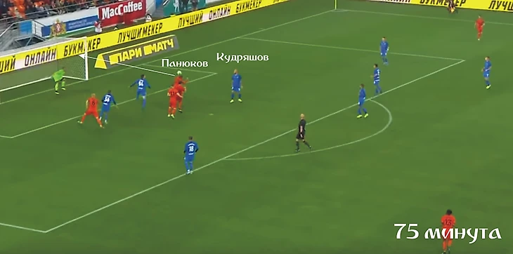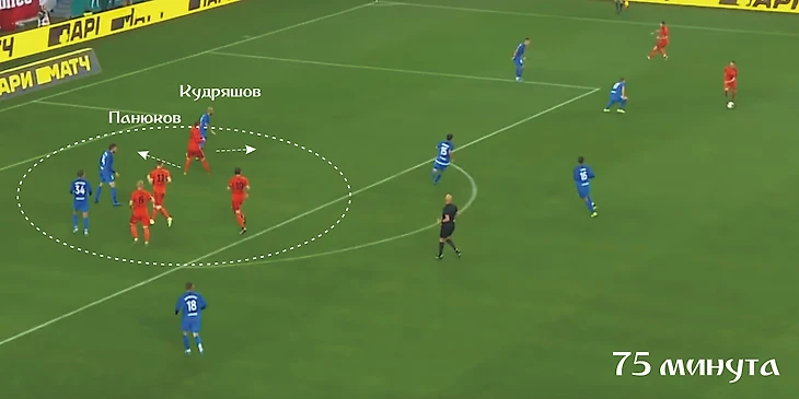 Получается соотношение 3 к 4 в штрафной и не в пользу "Сочи". При этом ещё и Кудряшов вместо того, чтобы следить за Панюковым, движется в сторону подающего, как будто мало там других игроков "Сочи".