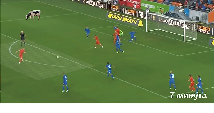 "Урал" не сбавил обороты после гола, хотя традиционно играть они сразу бросают, если вдруг забьют. Здесь мы видим, что одинокий Панюков, получив мяч, в касание откидывает его назад на Аугустыняка. Мог бы обработать и пробить, но он так не умеет. Полузащитники Нобоа и Цаллагов располагаются в своих зонах, как по схеме положено, не хватает только Бурмистрова, который пропал без вести, умчавшись немногим ранее в атаку. Удар и снова мимо. Снова опорная зона свободна.