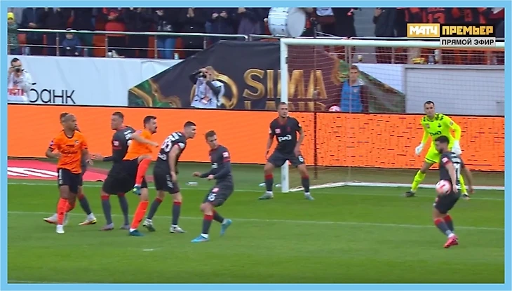 Однако нет. Не могут. Защитники Ненахов и Сильянов отлично контролируют игроков атаки, так что Мишкичу только остаётся дальний удар. Неожиданно хорошо пробил хорват, но всё равно не гол.