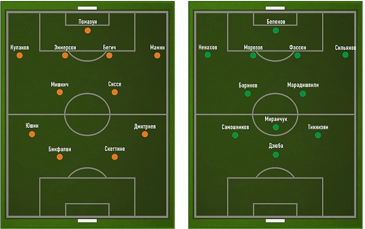 «ЛОКОМОТИВ». Четвёрка защитников неизменна, будь это чемпионат России или кубок. Вышел Марадишвили по причине отсутствия Карпукаса. Крайними форвардами вышли защитники, причём не в первый раз, что не в первый раз изумляет.
