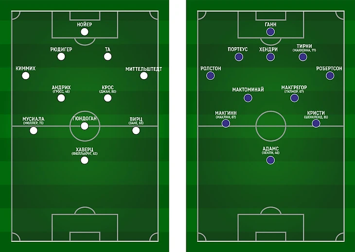 Тем же кто смотрел, пришлось развлекаться угадыванием замен. Почему Нагельсманн не выпустил Бауманна? Мужику 34 года, а он ещё не разу не сыграл за сборную. Зачем Нагельсманн его взял, если не для таких игр? С таким же успехом он отдыхал бы на поле, зато мог порадовать семью и родственников. То же касается Байера, Фюриха, Коха, Антона, Хенрихса и Ундава. Разве вы не для зрителей здесь играете в футбол? Так дайте и нам зрелище, тем более зрителям на стадионе, которые покупали билеты за несколько тысяч евро, а получили открытую тренировку в облегчённом режиме.