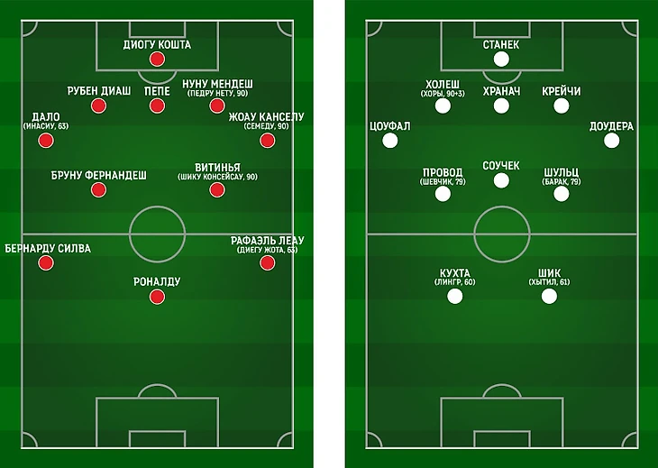 В добавленное время сын Сержиу Консейсау забил победный гол, и тут тоже помог несчастный Хранач, который будет помнить эту игру всю свою жизнь. Пытаясь остановить мяч, чешский защитник встал так, что снаряд прокатился у него аккуратно между ног и замедлился ровно до нужной скорости, чтобы Консейсау забил гол.
