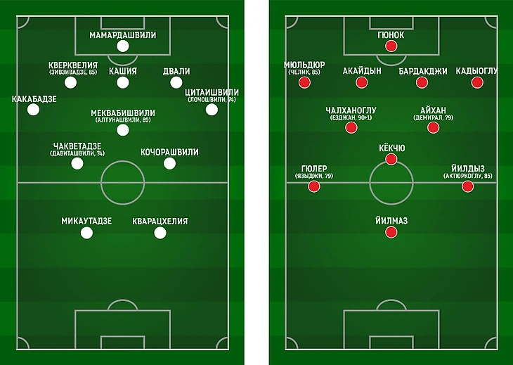Турция - Грузия 3:1 Мюльдюр, 25; Гюлер (Айхан), 65; Актюркоглу 90+7 - Микаутадзе (Кочорашвили), 32.