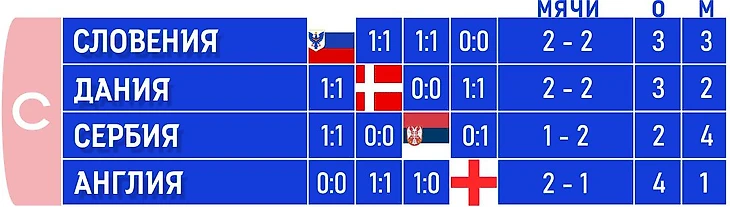Сложилась уникальная ситуация. Дания и Словения закончили с равенством абсолютно по всем спортивным показателями, а их официально аж 7: 1. Игра между собой - ничья; 2. Разница мячей между собой - одинаково; 3. Кто больше забил между собой - одинаково; 4. Матчи с остальными командами - одинаково (2 очка, 1-1); 5. Разница мячей в группе - по нулям; 6. Кто больше забил в группе - по два; 7. Количество побед в группе - по нулям.