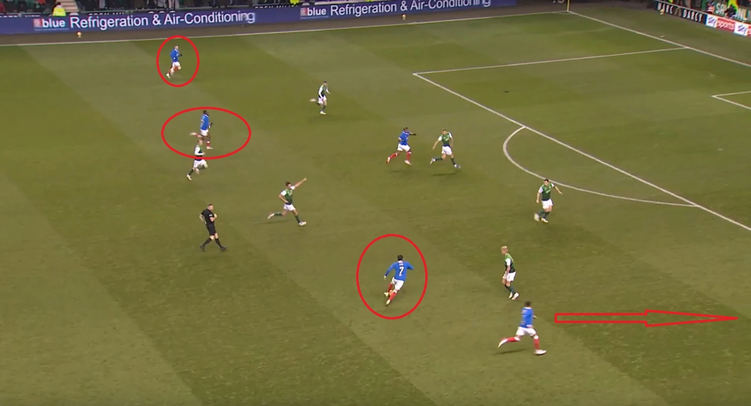 Майкл Бил, ассистент Стиви Джи по тактике, предложил изящное решение - два игрока атаки в полуфлангах, подключение центральных полузащитников в штрафную, фуллбеки на очень высоких позициях для создания ширины. Уже на более позднем этапе с приходом в команду Кемара Руфа "Рейнджерс" получил второго нападающего в роли таргетмена, а Альфредо Морелос смог действовать вариативнее, больше не являясь чистым завершителем. Райан Кент по-прежнему был главной фигурой в атаке, связывая линии. Схема не подходила имеющейся команде, но худо-бедно работала, и если в атаке команда могла мучиться с абсолютно любым соперником, то подход к прессингу, подсмотренный у Юргена Клоппа, резко сократил опасность своим собственным воротам. "Рейнджерс" имел беспрецедентную надежность в обороне - да, во многом из-за уровня самого чемпионата, но в первую очередь из-за системы.
