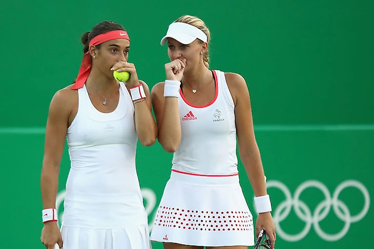 Каролин Гарсия и Кристина Младенович еще в прошлом году играли с другими партнершами и образовали пару именно с прицелом на Олимпиаду. Их сотрудничество увенчалось успехом еще до Игр: в этом сезоне они победили на четырех турнирах, включая «Ролан Гаррос», и в Рио приехали одними из главных претенденток на пьедестал. Олимпийский квест француженок, однако, завершился после одного матча, который они проиграли японкам Дои и Ходзуми, игравшим вместе всего второй раз (единственный матч провели два года назад и проиграли).