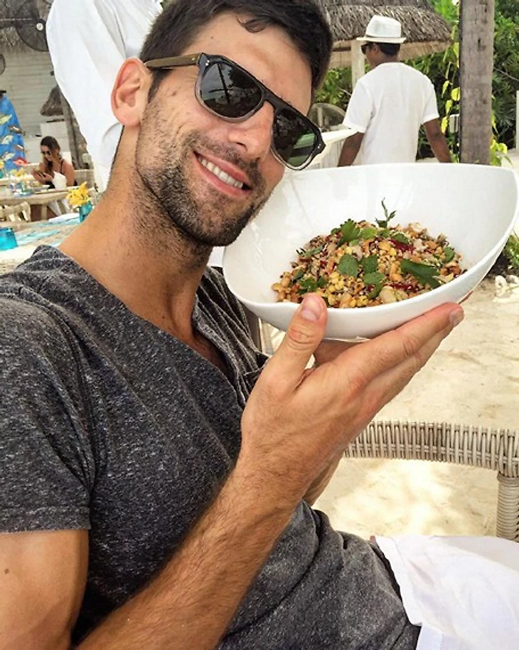 Примерно в середине этого феноменального отрезка Джокович выпустил книгу Serve To Win, в которой рассказал, как отказ от глютена позволил ему покорить мир. В более широком смысле это книга о том, как важно слушать свой организм. Именно по этой методике Джокович постепенно отказался от мяса, а потом и ото всех продуктов животного происхождения. Первое время он якобы даже готовил преимущественно сам, останавливаясь только в тех гостиницах, где ему позволяли пользоваться кухней. Со временем, как говорят, он стал возить с собой повара, а на некоторых крупных турнирах угощал репортеров «энергетическими шариками».
