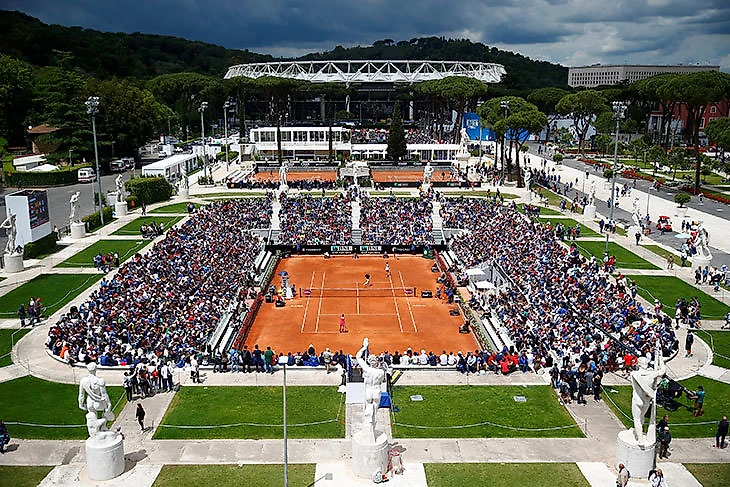 Спортивный комплекс «Форо Италико», почти 70 лет принимающий крупнейший итальянский теннисный турнир, увидев однажды, забыть невозможно. Раскинувшийся на берегу Тибра у самого высокого римского холма Монте-Марио (его географическая долгота в Италии до 1960-х считалась нулевым меридианом), «Форо Италико» включает в себя не только теннисные площадки, но также Водный стадион, легкоатлетический Мраморный стадион и Олимпийский стадион, где играют футбольные «Рома» и «Лацио». Территорию комплекса украшают классические – но от этого не менее эффектные – римские маркеры: высокие пинии, мраморные статуи и мозаики в античном стиле.