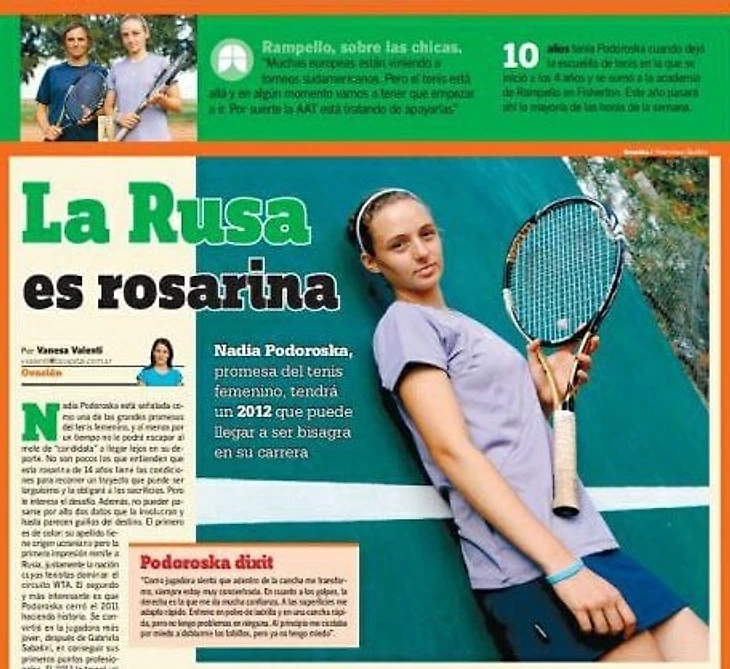 Подорошка – дочь аргентинцев и внучка украинцев из Киевской области, названная в честь румынской гимнастки Нади Команечи, – на родине еще известна как Русская после того, как в 2012-м ее в издании Diario La Capital аллитерации ради назвали «русской из Росарио». Поэтому на первой неделе «Ролан Гаррос» она отвечала на неочевидный вопрос, знает ли русский (не знает).