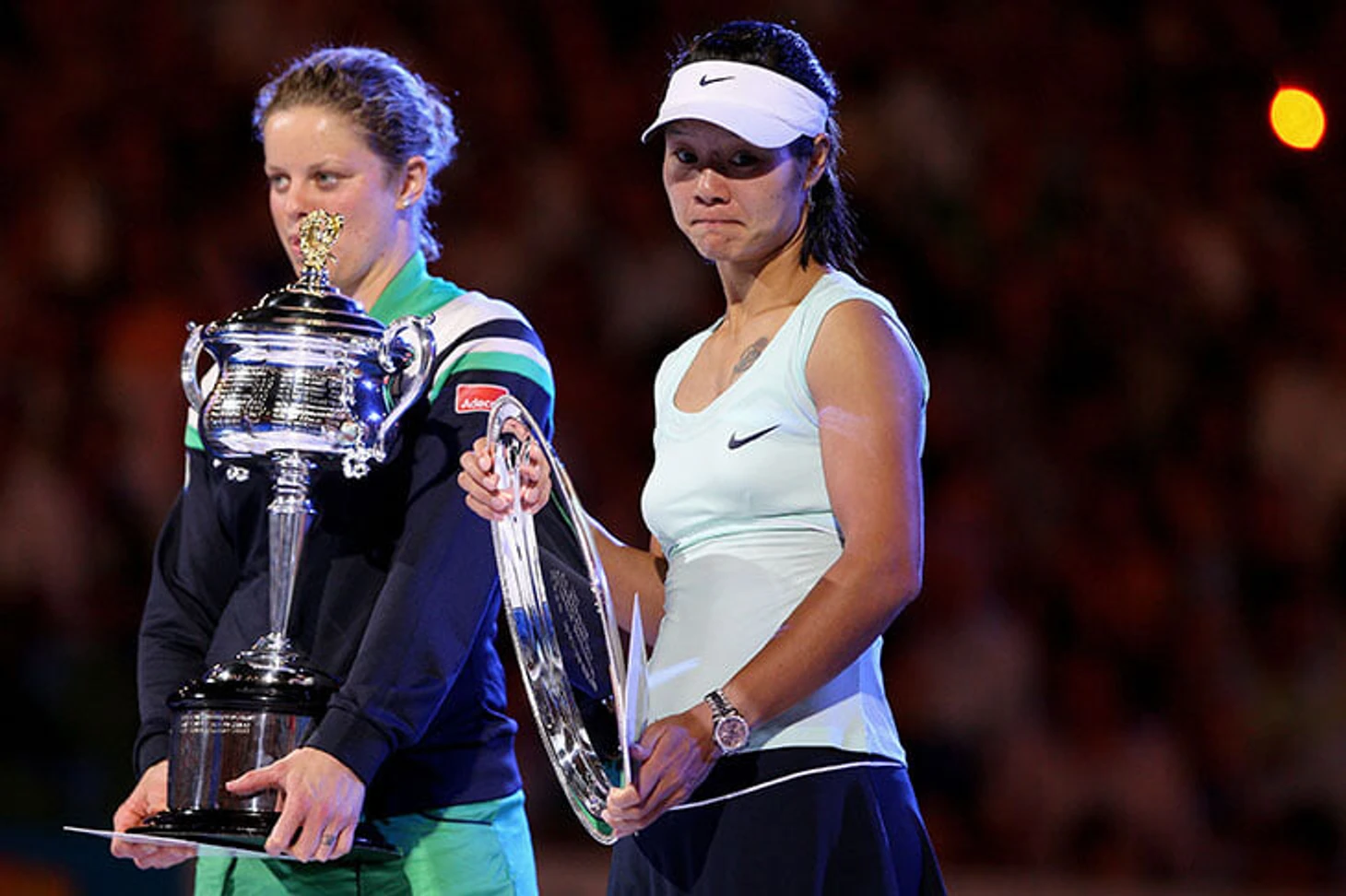 Ли На начала год с титула в Сиднее, разобравшись в финале с Ким Клейстерс. На Australian Open до полуфинала она не проиграла ни сета. Андреа Петкович, которую Ли На прошла в четвертьфинале, убеждала журналистов, что та выиграет титул, объясняя это не столько игрой, сколько уверенностью китаянки и ее умением держаться на корте. «Спасибо, конечно, Петкович, но, наверное, она уверена в этом больше, чем я», – отшучивалась Ли На.