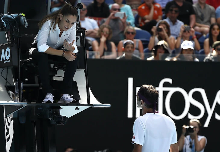 Чуть позже Велович вынесла Федереру предупреждение за брань, о которой ей сообщила линейная судья, и выдержала его недовольство, когда он подошел разбираться: