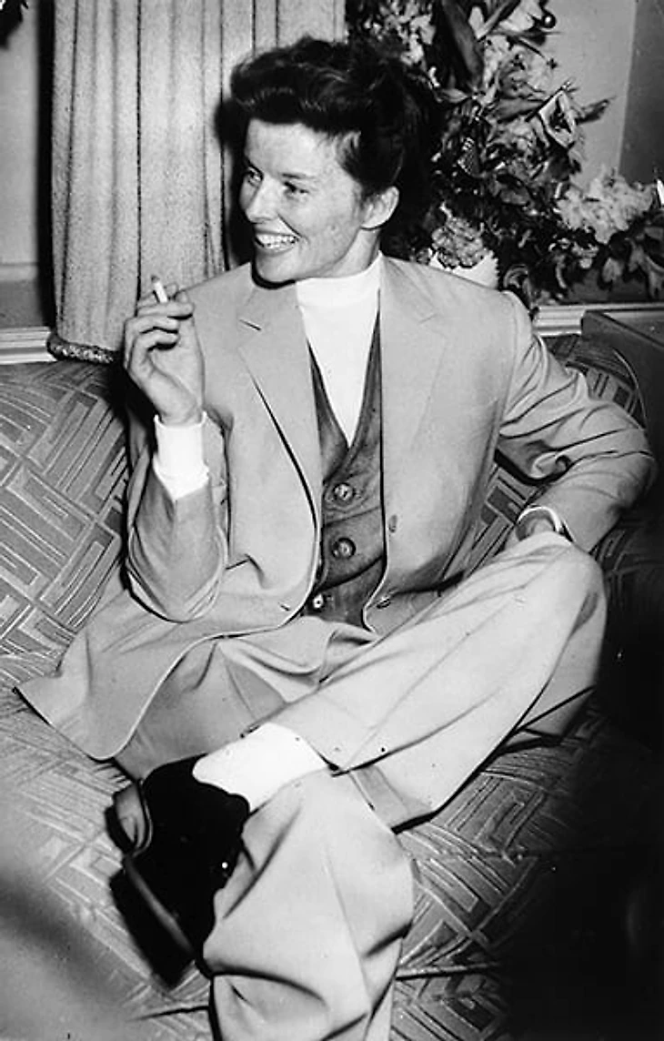 Еще в XIX веке кросс-дрессингом активно занималась французская писательница Жорж Санд, а век спустя андрогинность в поп-культуру впустили голливудские богини Грета Гарбо, Марлен Дитрих, Кэтрин Хепберн. В первой половине XX века, когда женщина в брюках еще была вызовом благопристойности, Гарбо сочетала брюки с бадлоном, Дитрих надевала смокинг на премьеры, а Хепберн (на фото) ходила по студии в трусах, пока ей не вернули конфискованные из гримерки джинсы.
