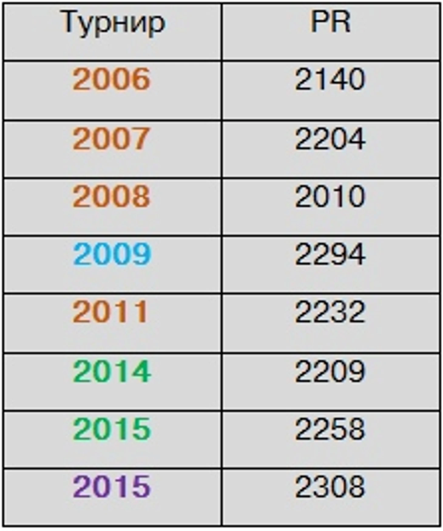 Итого 7,44 очка, то есть ожидаемое количество очков игрока с рейтингом 2130,28 против данных соперников равно фактически набранному Федерером. Поэтому, округлив до целых, получаем, что его Performance Rating во Франции-2009 равен 2130.