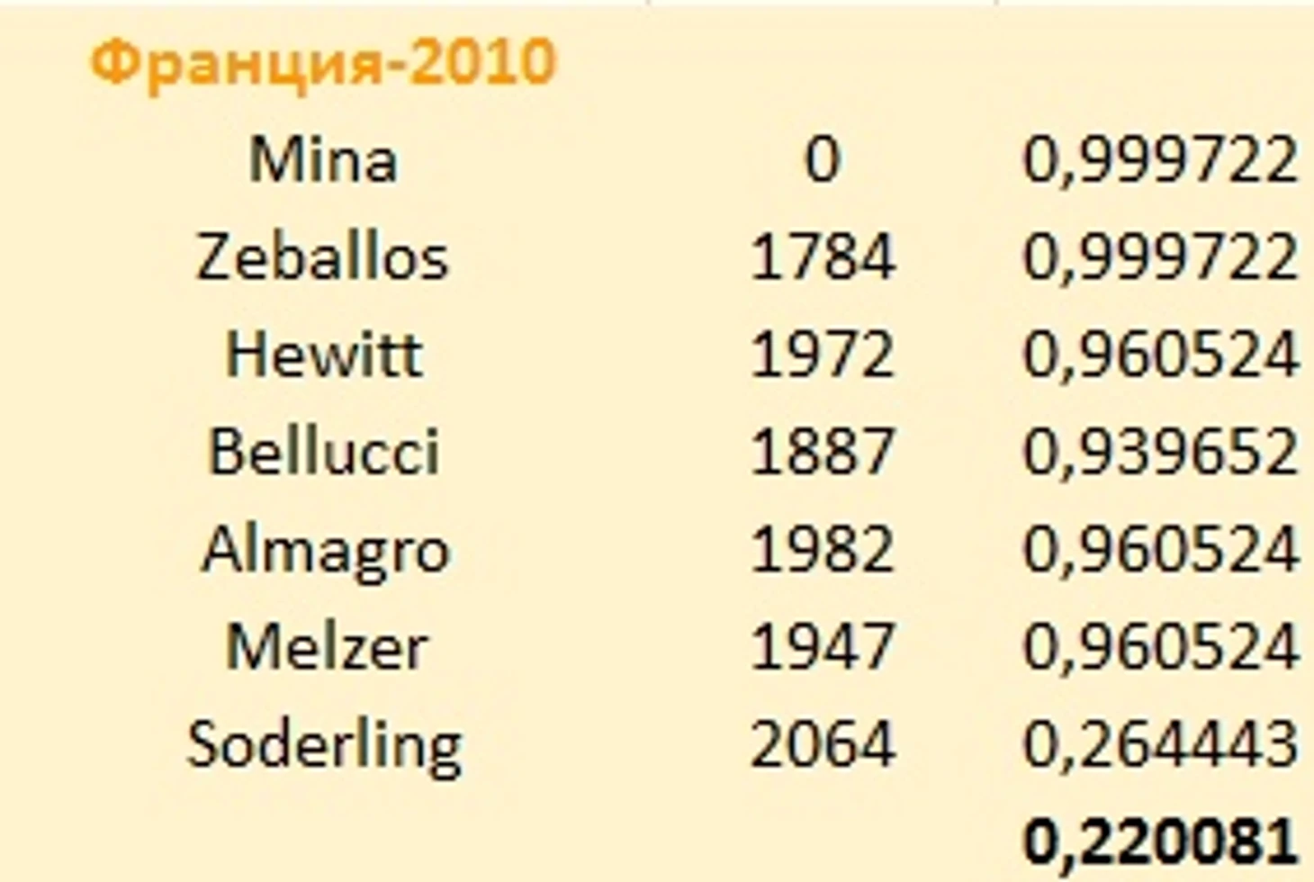 Проиллюстрируем данную методику определением уровня игры Федерера во Франции-2009. Начиная с четвертьфинала, швейцарец сыграл 11 партий: