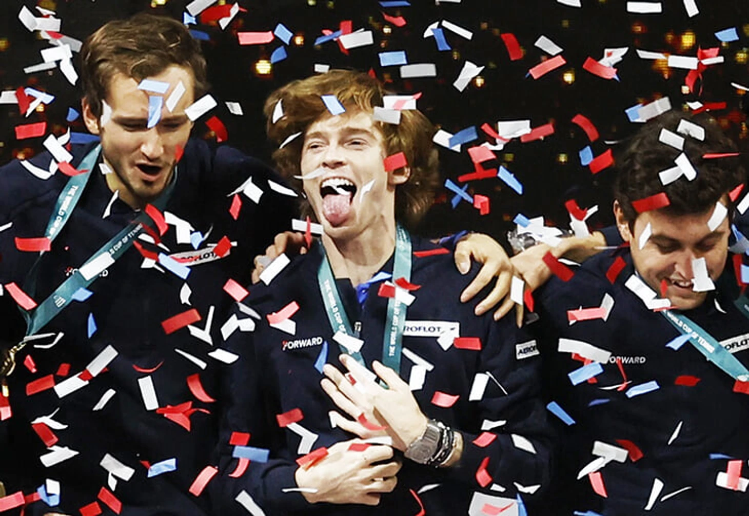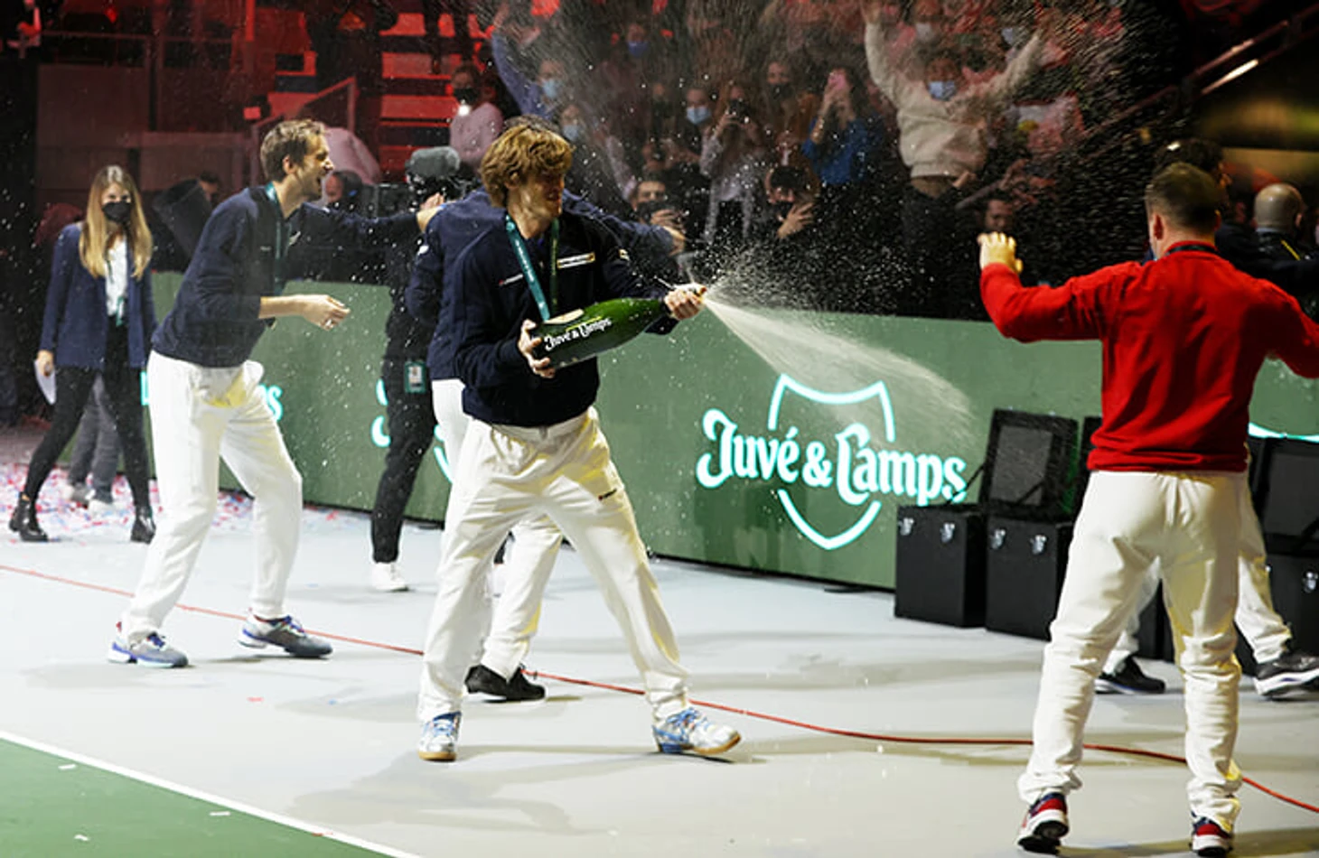 В воскресенье самыми напряженными моментами кубкового финала против команды Хорватии стали двойная ошибка Медведева на сетболе последнего матча, а также борьба наших игроков между собой за право облить друг друга чемпионским шампанским.