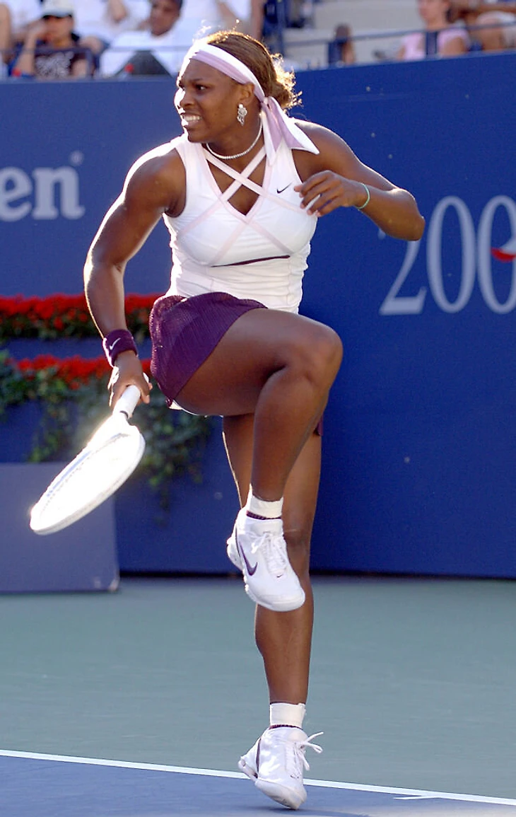 В 2003-м Серена пропустила US Open из-за травмы и операции на колене, но вернулась в 2004-м финалисткой «Уимблдона» (предположительно, плакавшей в раздевалке после поражения от Марии Шараповой) и 11-й ракеткой мира. Тот турнир в исполнении Уильямс вошел в историю двумя вещами: во-первых, вдохновленным Джеймсом Дином и Андре Агасси нарядом из джинсовой мини, кроп-топа и сапог (!), а во-вторых, скандалом в четвертьфинале.