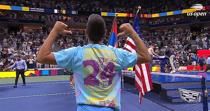 Сразу после традиционного похода в ложу к семье и команде Новак Джокович, когда выиграл US Open в финале у Даниила Медведева, надел особую футболку.