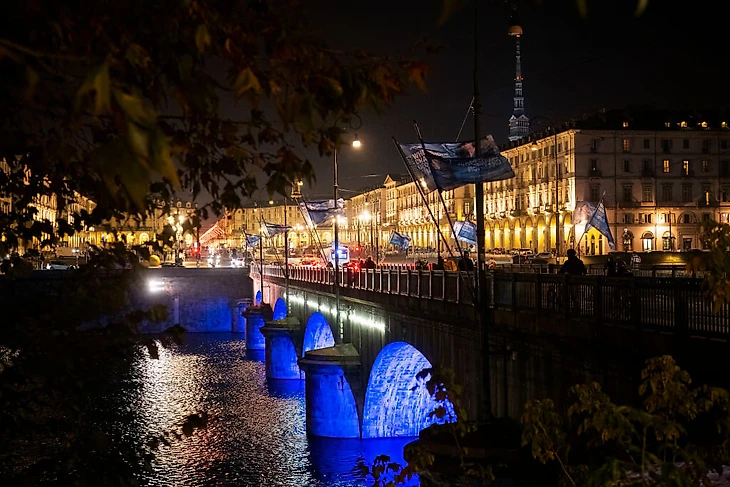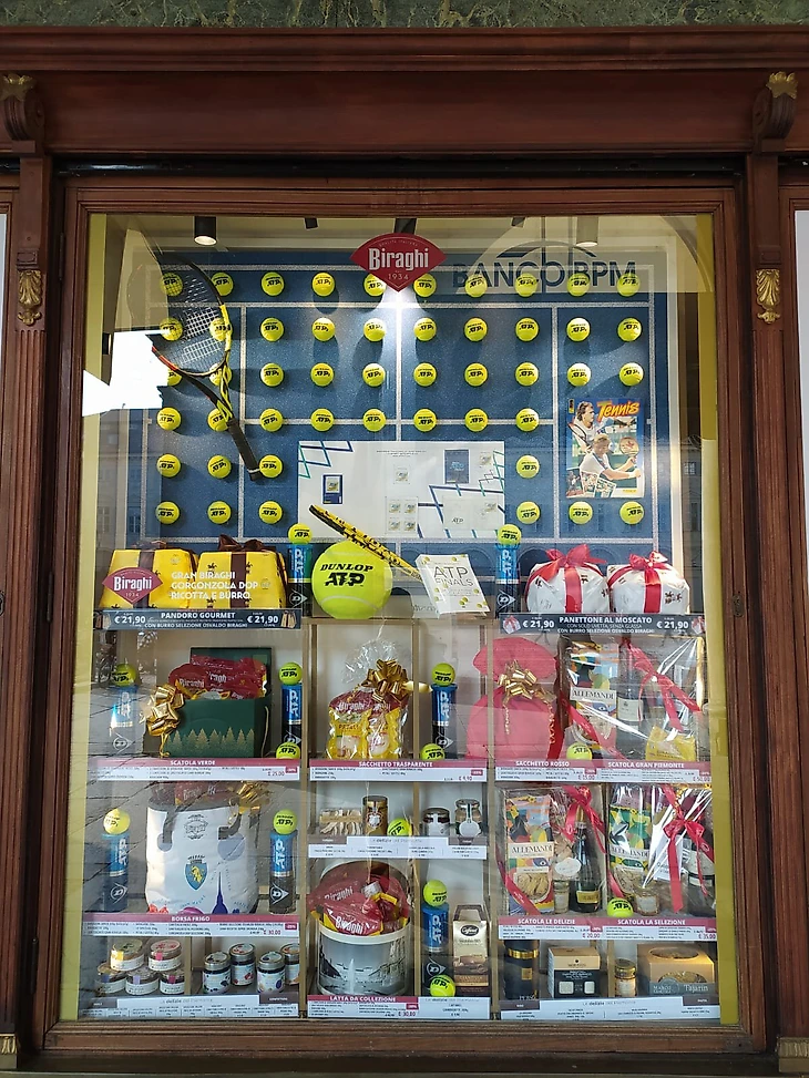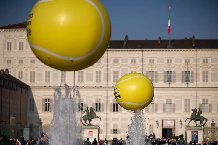 Площадь Кастелло, центральная в Турине, в этом году оформлена чуть более скудно: подвешенные теннисные мячи над фонтанами можно видеть во время телевизионных трансляций, а привычных ранее мини-столов для настольного тенниса и мини-кортов для всех желающих попробовать свои скиллы в теннисе – нет.