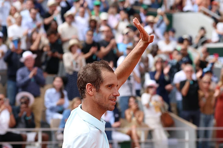 В первый день «Ролан Гаррос» турнир прощался с Рафаэлем Надалем, последний профессиональный матч сыгравшим в прошлом году. Четыре дня спустя – новая церемония, в честь ровесника Надаля Ришара Гаске, завершившего карьеру поражением в матче второго круга против первой ракетки мира Янника Синнера – 3:6, 0:6, 4:6.