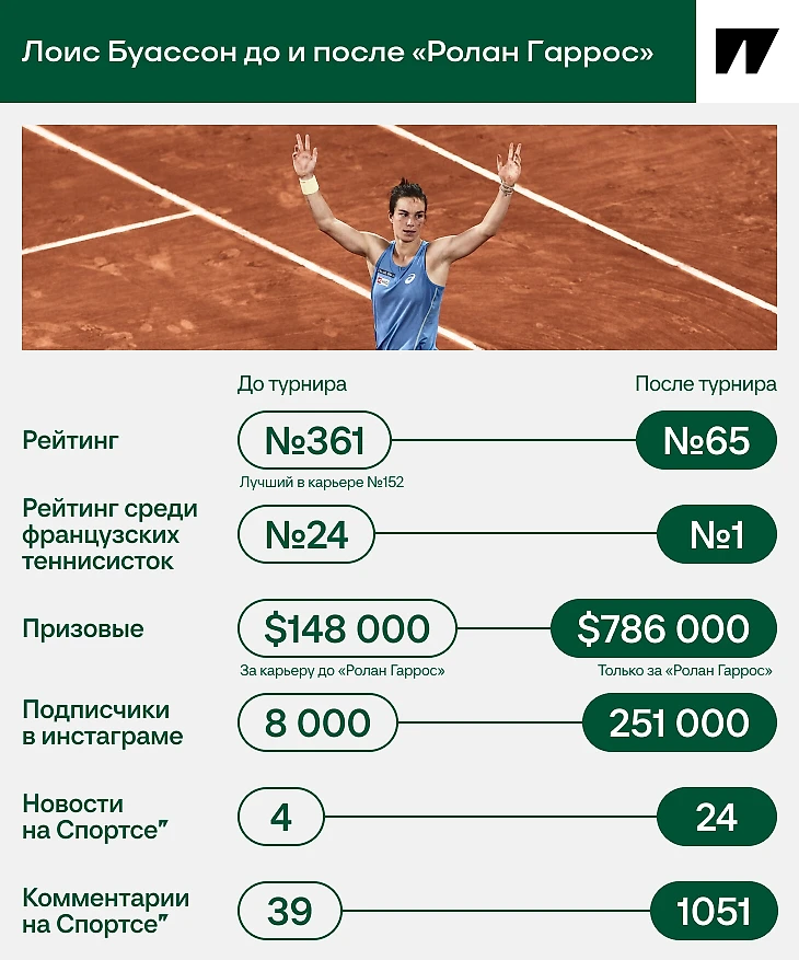 Важно понимать, что рейтинг Буассон на начало «Ролан Гаррос» не отражал ее уровень – бóльшую часть последнего года она восстанавливалась после травмы, которую получила на резком подъеме, и провела только семь турниров.