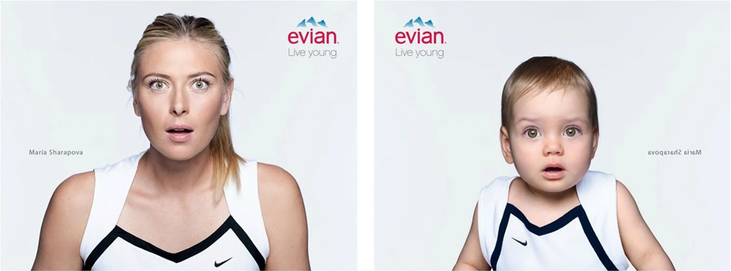Пару лет назад Шарапова, в разное время рекламировавшая напитки PepsiCo Gatorade и Tropicana, стала лицом воды Evian и ее хитовой кампании baby&me.