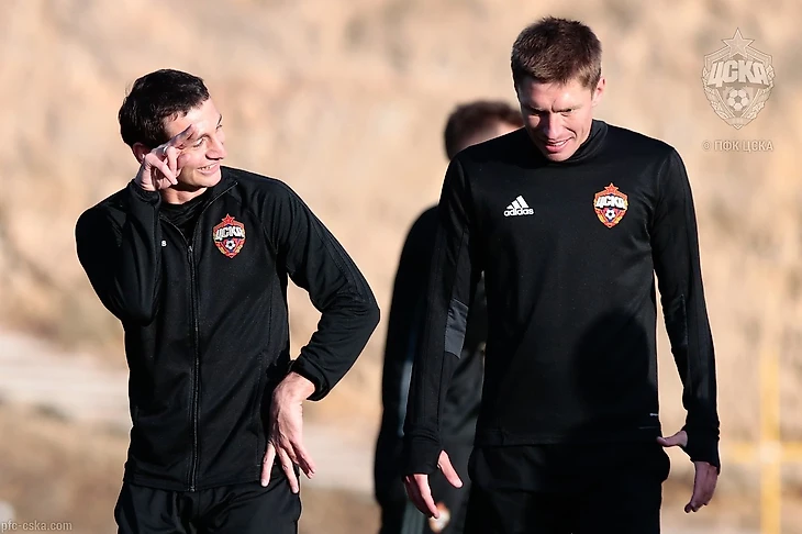 Первая сегодняшняя тренировка армейцев уже завершилась. Она продолжалась 1 час 45 минут. Венцом занятия стал турнир трёх команд. «Зеленые», которых вели в атаку Александр Головин и Алан Дзагоев, начали очень удачно.