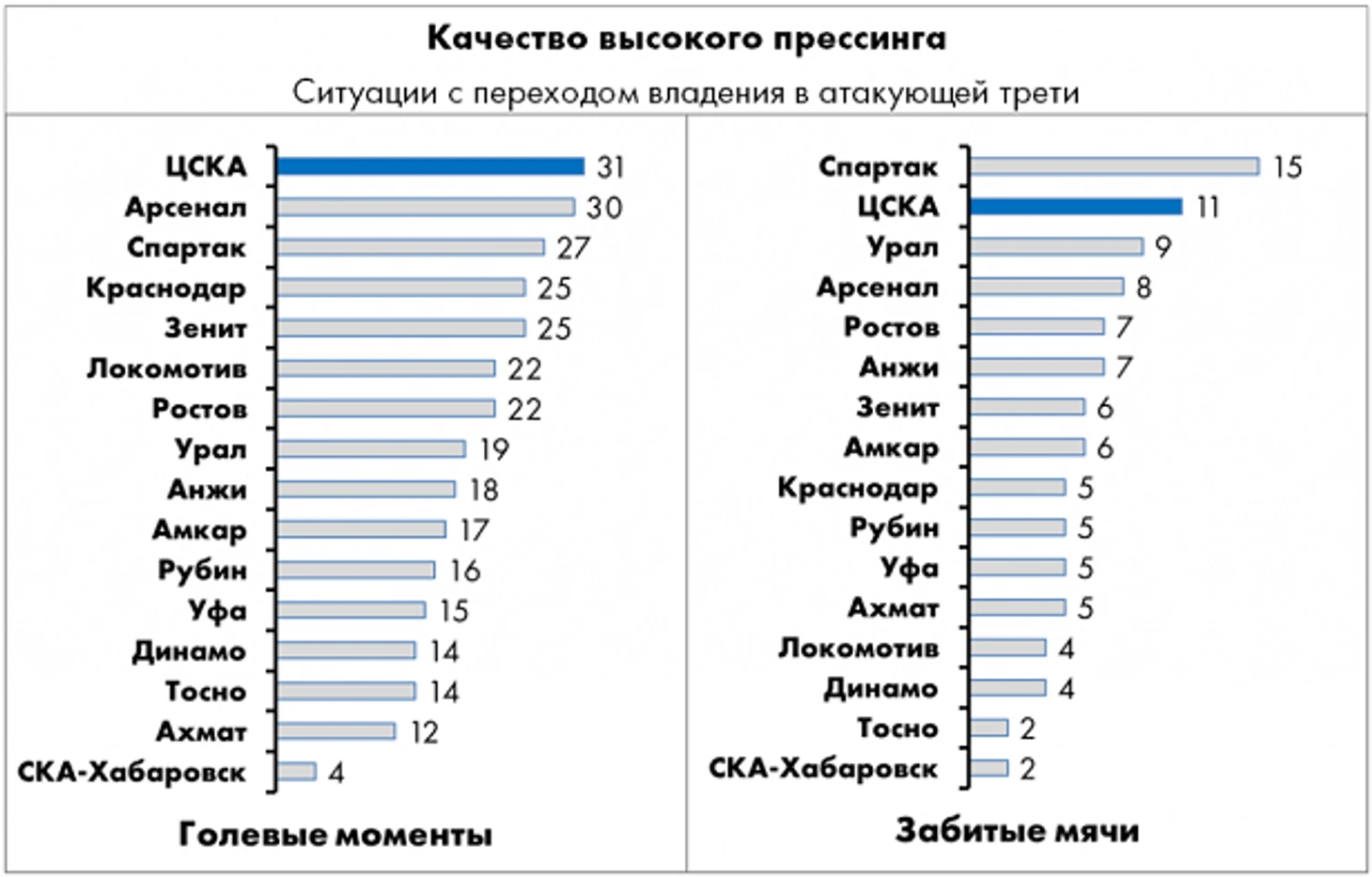 Армейцы чаще всех в лиге создают моменты в результате удачных попыток высокого прессинга