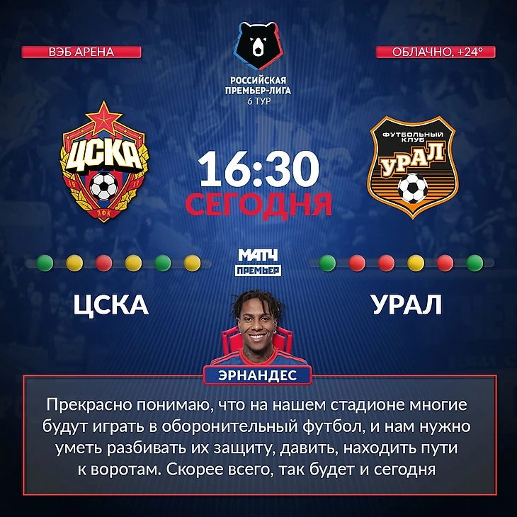 «Прекрасно понимаю, что на нашем стадионе многие будут играть в оборонительный футбол, и нам нужно уметь разбивать защиту соперников, давить, находить пути к воротам. Скорее всего, так будет и сегодня», — цитирует Эрнандеса пресс-служба ЦСКА.