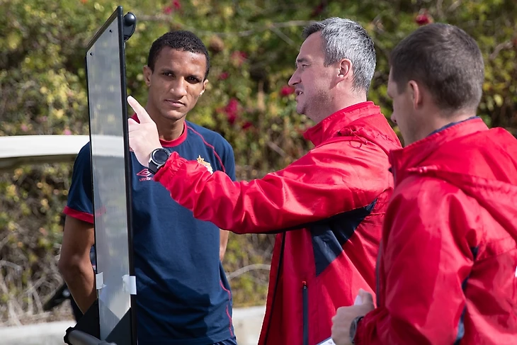 — Наблюдаешь со стороны, как вы фактически одновременно переводите футболистам сразу на два языка, и диву даешься. Как это у вас получается?— Синхронный перевод считается значительно более сложным, чем последовательный, поскольку работать приходится в жесточайшем цейтноте. Несмотря на это, всегда чувствовал в себе способности к синхронному переводу, он мне легче давался. После прихода на должность главного тренера Виктора Гончаренко мне пришлось пойти еще дальше: переводить практически параллельно сразу на два языка — португальский и английский. Как раз в тот момент из аренды вернулся Витиньо, и у нас стало четверо англоговорящих футболистов плюс двое бразильцев. Необходимо было в режиме онлайн сообщать двум группам футболистов информацию, которая поступает от главного тренера. После летних перемен в составе команды для меня мало что изменилось. Сейчас мой рабочий процесс по-прежнему складывается таким образом, что приходится говорить в два раза быстрее. Сначала перевожу на английский, затем уже на португальский язык для Родриго Бекао и Марио Фернандеса. Виктор Михайлович говорит в привычном ему темпе, а мне приходится подстраиваться. Первое время считал, что это будет просто нереально, и мне элементарно не хватит времени. Но со временем появилось ощущение, что у меня неплохо получается.