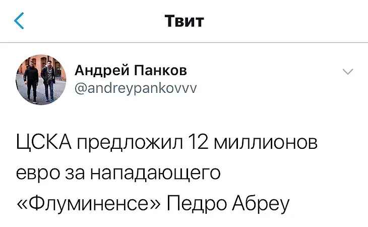 Как сообщает в твиттере журналист Андрей Панков, ЦСКА предложил 12 млн за нападающего Флуминенсе Педро Абреу.