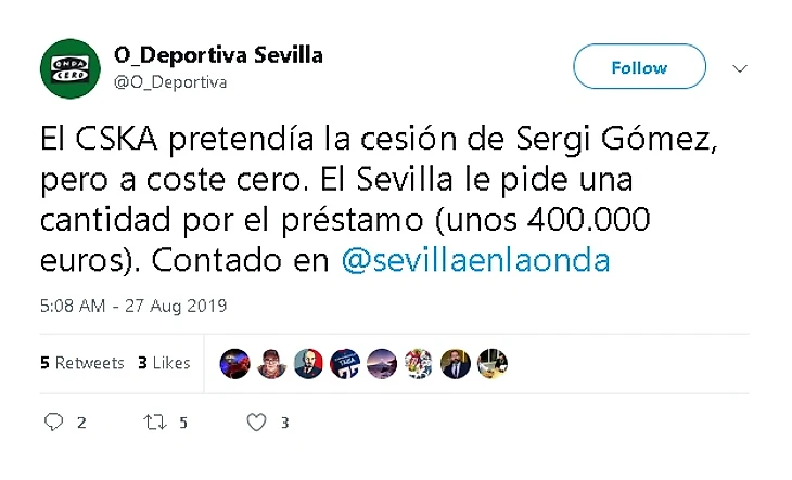 Как сообщают испанские источники, Серхи Гомес не перейдёт в ЦСКА из-за нежелания московского клуба платить за аренду футболиста 400 тысяч евро, именно такой ценник установила испанская сторона, что не устроило ЦСКА.