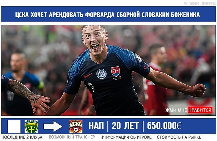 Боженику 20 лет. В текущем чемпионате Словакии он забил за «Жилину» 3 мяча и сделал 4 голевые передачи.