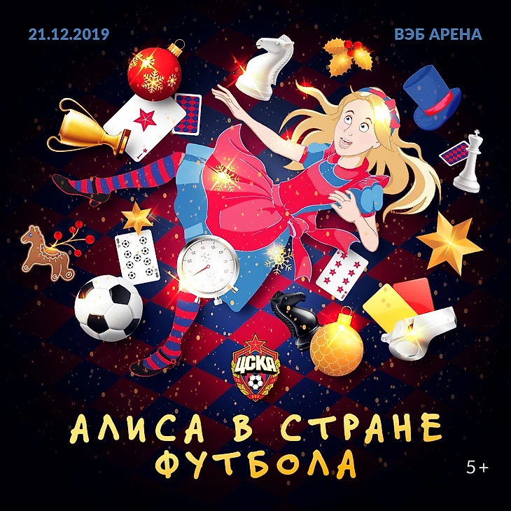 Детский клуб ПФК ЦСКА приглашает юных болельщиков армейцев 21 декабря на ВЭБ Арену, чтобы принять участие в иммерсивном новогоднем спектакле «Алиса в стране футбола»! Мальчишки и девчонки станут главными героями новогоднего приключения, и вместе с очаровательной Алисой попадут в Волшебный Лес, где их ожидают фокусы, мыльные пузыри, рождественское чаепитие в компании Безумного Шляпника и Кролика, шахматное сражение с Червовой Королевой и, конечно же, памятные подарки!
