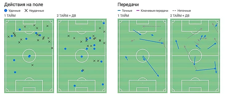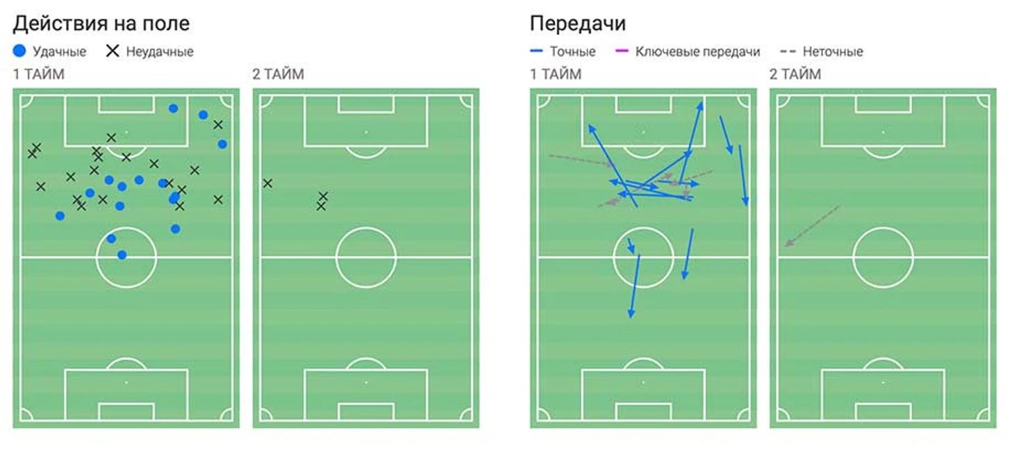 В воскресной игре с «Уфой» снова заметна минимальная активность в чужой штрафной (куда, справедливости ради, было не так просто пробраться), зато есть неплохой объём работы в подыгрыше и обострении.