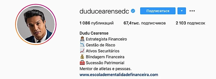 За последний год Дуду нашёл новое призвание. Теперь он – финансовый стратег. Именно так он себя позиционирует в «инстаграме».