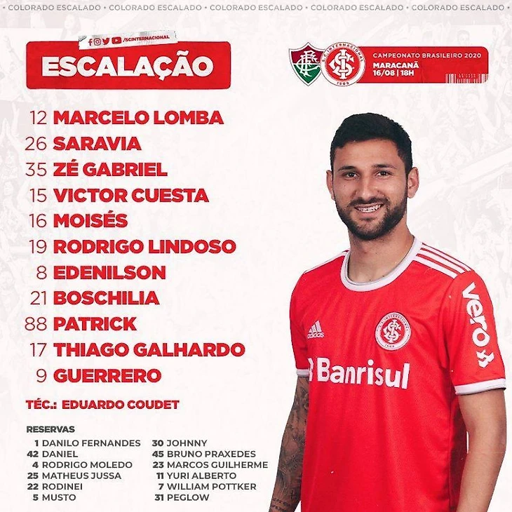 Футбольный клуб "Интернасьонал" объявляет, что в последние несколько часов было получено официальное предложение по центральному защитнику команды Бруно Фуксу, которое соответствует требованиям клуба. В связи с продвинутой стадией переговоров, руководством команды, техническим комитетом и самим игроком было принято решение о его неучастии в сегодняшнем матче против "Флуминенсе"
