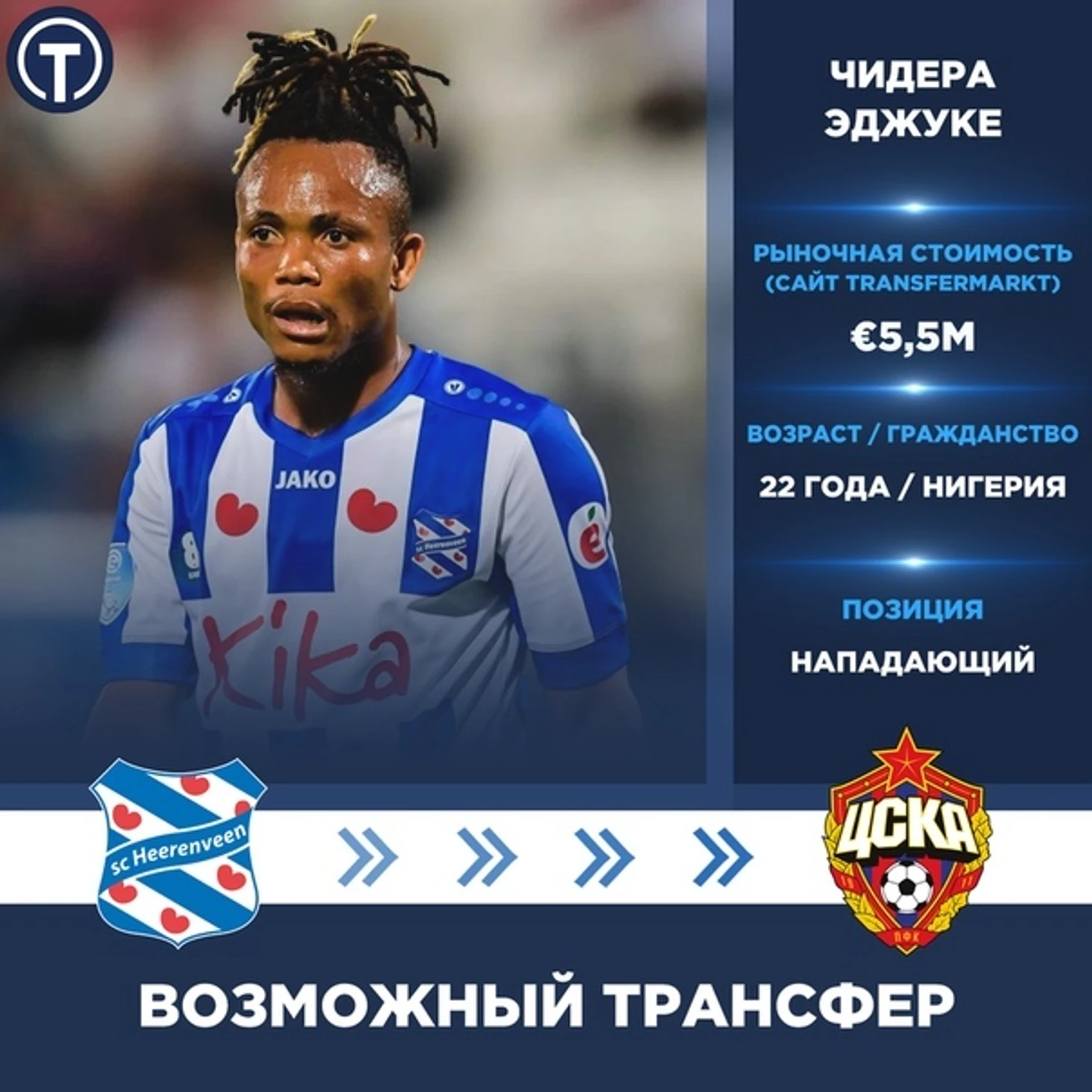 Как стало известно Sport24, нападающий «Херенвена» Чидера Эджуке сегодня ночью прилетит в Москву, чтобы согласовать последние детали контракта с ЦСКА.