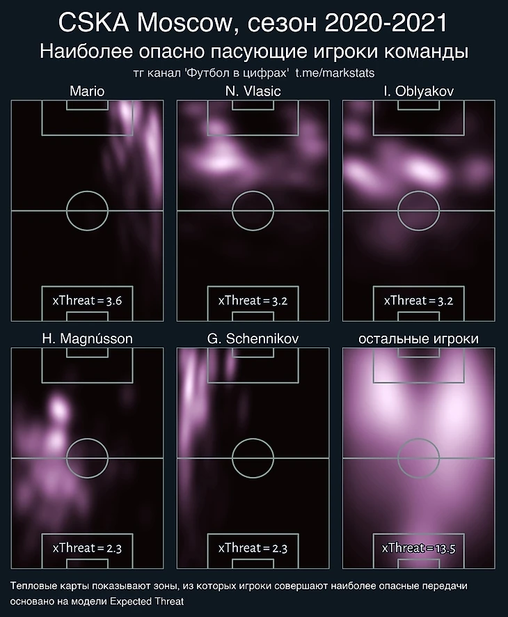 Марио Фернандес, Влашич, Обляков, Магнуссон и Щенников в сумме набрали больше очков xThreat, чем остальные игроки