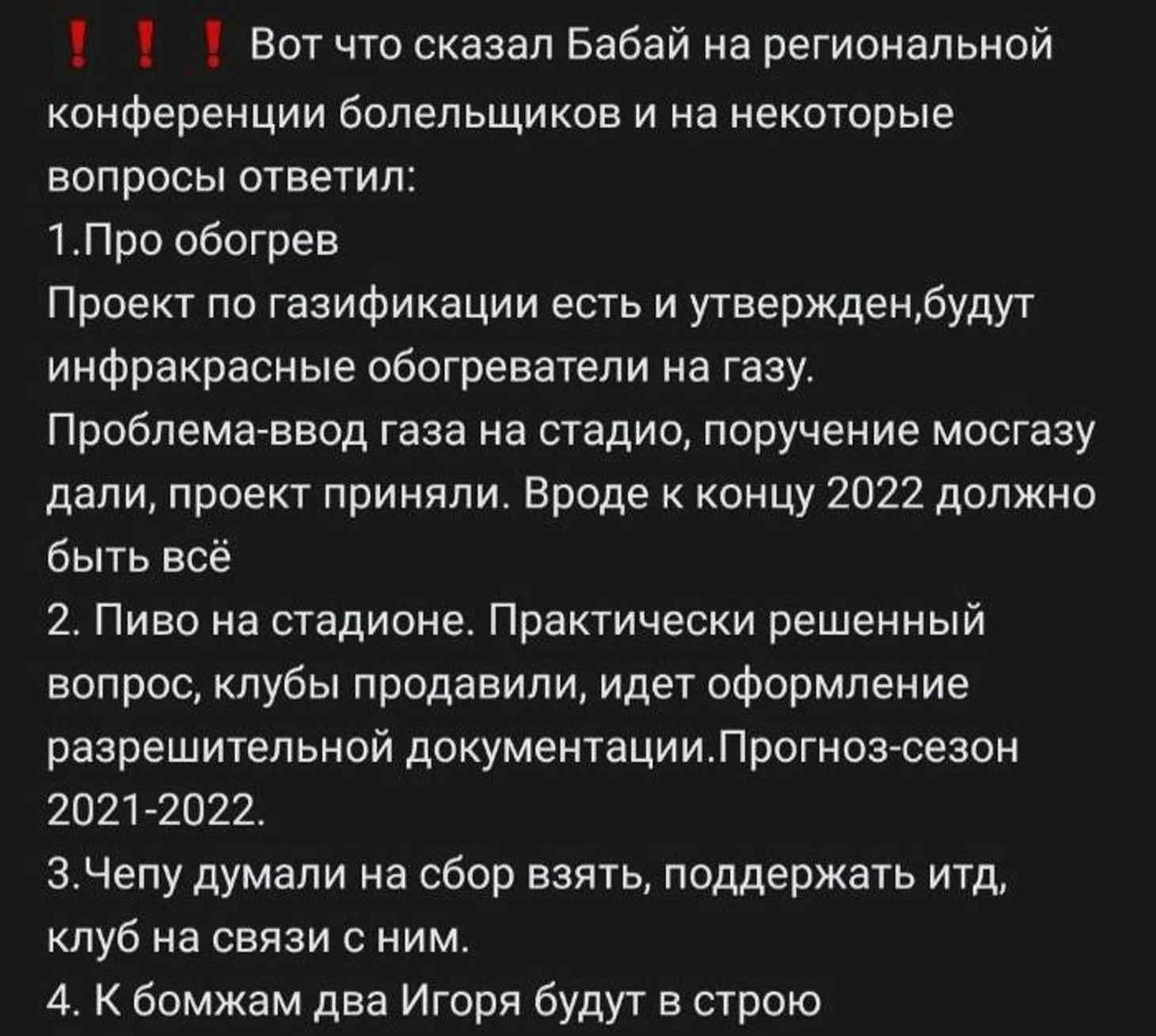 Он отметил, что в клубе хотели взять на тренировочный сбор экс-вратаря команды Сергея Чепчугова, чтобы поддержать бывшего футболиста. Бабаев подчеркнул, что клуб находится с ним на связи. Говоря о травмированных, Бабаев сообщил, что голкипер Игорь Акинфеев будет готов сыграть в матче 23-го тура Тинькофф РПЛ против «Зенита». Полузащитник Алан Дзагоев пропустит из-за повреждения две недели.