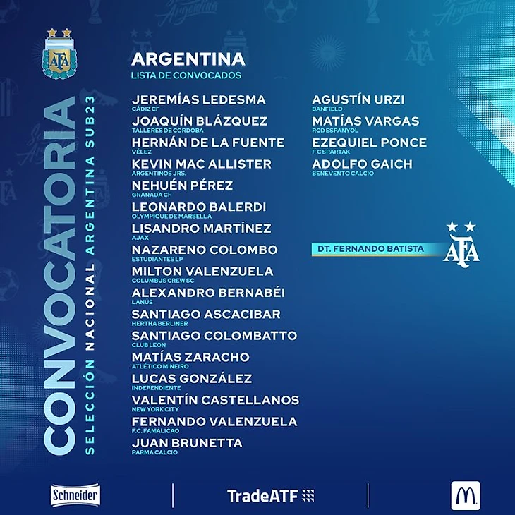 Форвард "Спартака" Эсекьель Понсе и нападающий ЦСКА Адольфо Гайч, выступающий на правах аренды за "Беневенто", вызваны в олимпийскую сборную Аргентины (U-23).