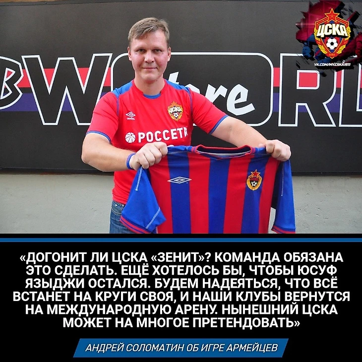 «В матче с «Уралом» жду победы ЦСКА. В таких играх должен проявиться тренерский опыт, команда не должна расслабляться. Ведь многие футболисты вернулись из расположения сборных, и все находятся в разном физическом и эмоциональном состоянии. Догонит ли ЦСКА «Зенит»? Команда обязана это сделать. Еще хотелось бы, чтобы Языджи остался. Будем надеяться, что все встанет на круги своя, и наши клубы вернутся на международную арену. Нынешний ЦСКА может на многое претендовать», — сказал Соломатин.
