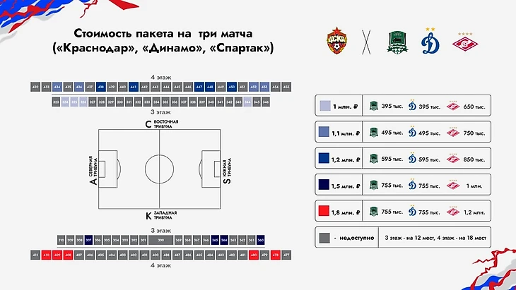 ПФК ЦСКА принял решение о проведении специальной акции – «пакетное предложение» на три домашних матча клуба в рамках чемпионата России. Предложение будет действительно при аренде скайбокса на домашние матчи с «Краснодаром», «Динамо» и «Спартаком». Теперь вы сможете арендовать VIP-ложу вместимостью от 12 до 18 человек по более выгодным ценам. Аренда ложи на самые зрелищные матчи сезона — это отличная возможность пригласить ваших коллег или партнёров на футбол, обсудить ваши дела в неформальной обстановке, а также отлично провести время в узком кругу. Посмотреть доступность лож можно по ссылке: https://pfc-cska.com/tickets/hospitality/ Забронировать ложу Вы можете по ссылке выше или по телефону: +7 (495) 128 44 11 До встречи на ВЭБ Арене!