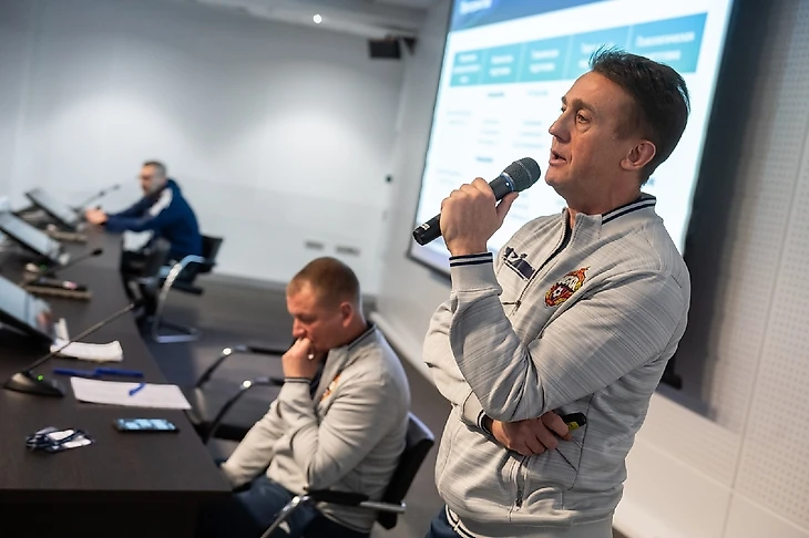 Во второй день конференции перед более чем двухстами слушателями со всей России выступили тренеры Академии ПФК ЦСКА Александр Бауман и Алексей Сафроненко, которые рассказали о дифференциации в футболе. Помимо лекционного выступления состоялось и практическое занятие. Александр Валентинович и Алексей Геннадьевич наглядно показали примеры дифференциации, изменяя по ходу занятия условия и правила выполнения упражнений, варьируя количество игроков и по-разному ограничивая пространство.