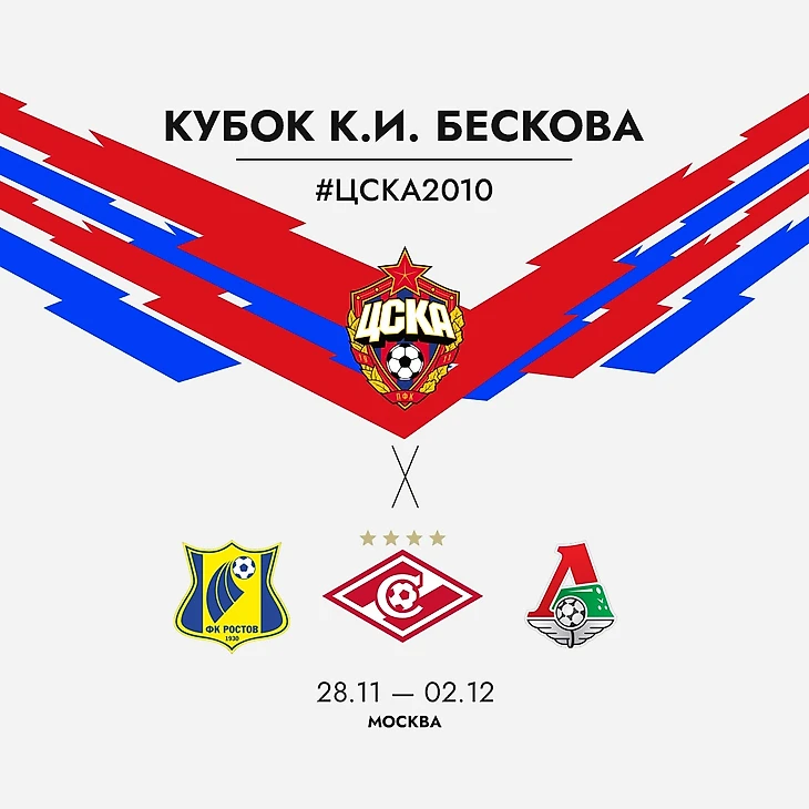В очередном розыгрыше турнира примет участие команда ДЮСШ ПФК ЦСКА 2010 года рождения (старший тренер — Андрей Плахетко). На групповом этапе красно-синие сыграют с «Ростовом», «Локомотивом» и командой «Спартак-регионы». Матчи будут проходить в формате 11х11, каждый будет состоять из двух таймов по 30 минут. В полуфиналы выйдут по две лучшие команды каждой из двух групп. Расписание команды ДЮСШ ПФК ЦСКА на групповом этапе турнира «Бесков и его команда» 28 ноября, 11:30. ПФК ЦСКА — «Ростов» 29 ноября, 14:30. «Спартак-регионы» — ПФК ЦСКА 30 ноября, 11:30. ПФК ЦСКА — «Локомотив» Все матчи турнира будут транслироваться в прямом эфире на YouTube
