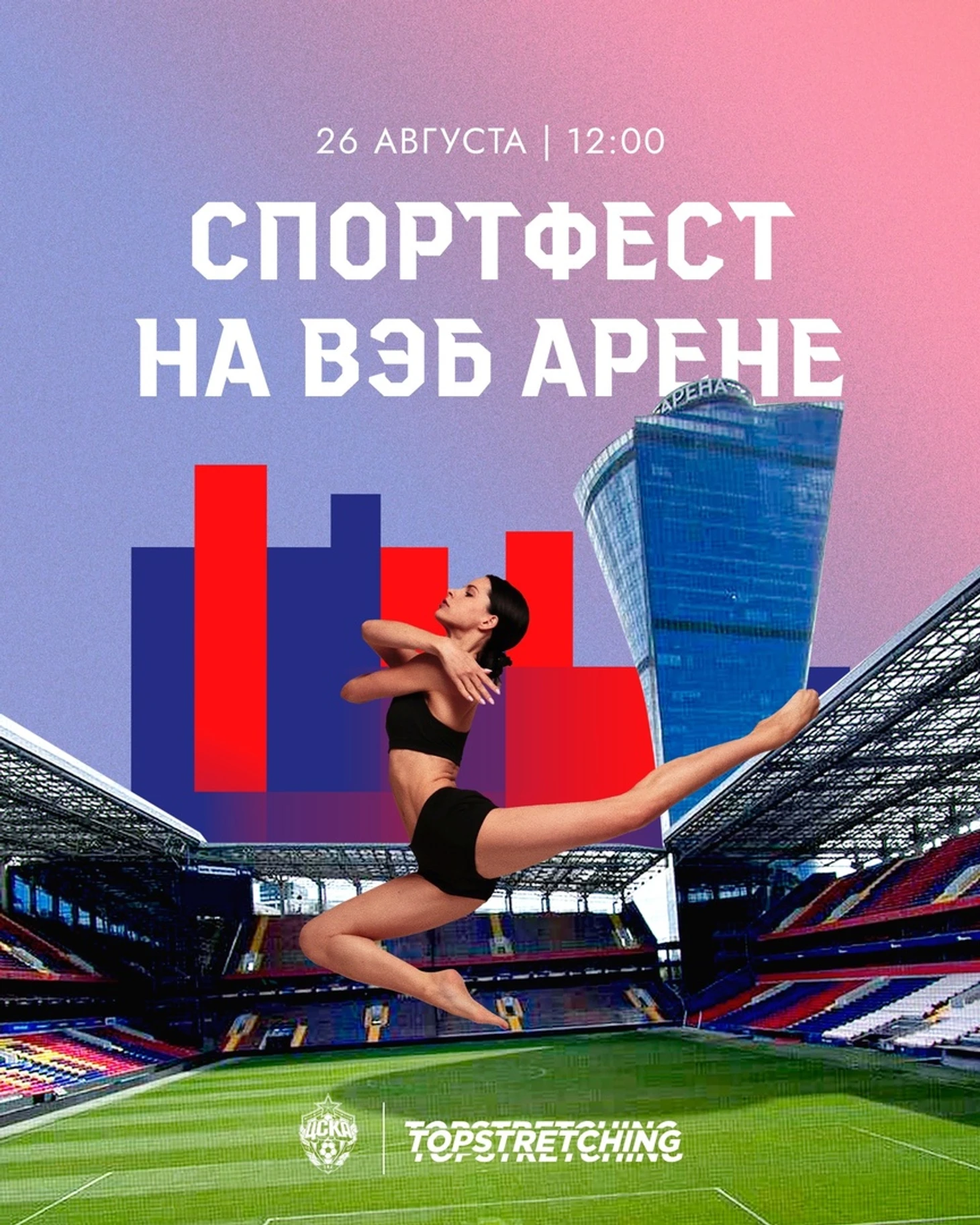 ПФК ЦСКА совместно со студией растяжки TOPSTRETCHING® приглашает вас на спортивное мероприятие, которое пройдет на газоне футбольного поля ВЭБ Арены