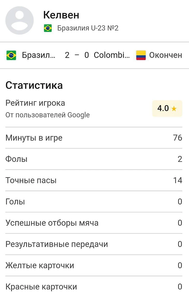 Келлвен отыграл 76 минут в матче олимпийского отбора против сборной Колумбии U-23